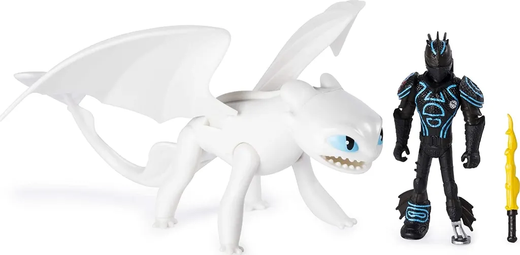 Produktbeschreibung: Komm mit in die geheime, actiongeladene Welt des neuen Dragons-Kinofilms: Dragon & Viking, das ist das unzerztrennliche Duo Drache & Reiter mit tollen Spielmöglichkeiten und Features! Hochdetaillierte Figuren – komplett im Design des Kinofilms; so tragen die Reiter erstmals Rüstung, und die Schuppen der Drachen sind geheimnisvoll gefärbt. Flieg mit den Drachen ins Abenteuer!