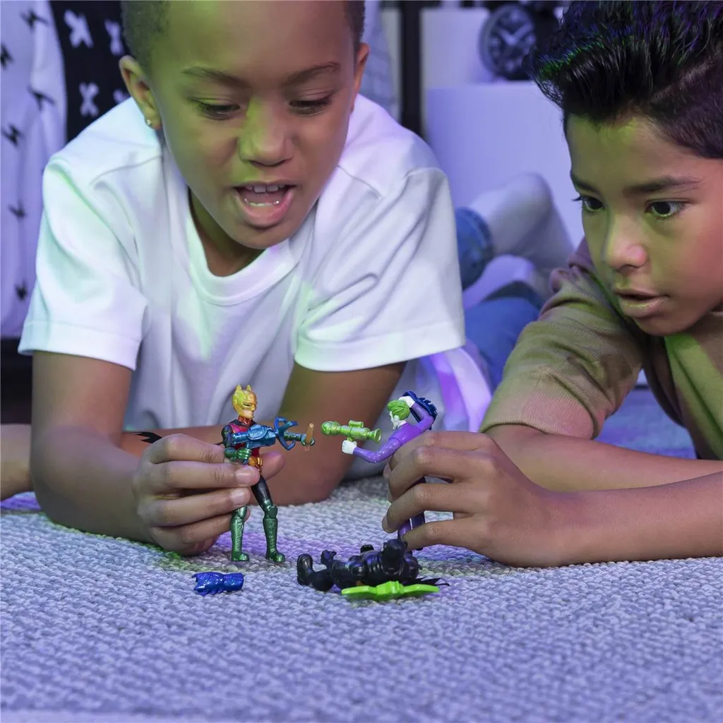 - 3 mysteriöse Accessoires: Finden Sie 3 Zubehörteile, wie Handschuhe, Schilde und mehr, plus ein Batgear-Zubehör in jeder Packung. Enthüllen Sie Zubehör in Materialausführungen wie Neon oder Metallic, die zu der Mission passen