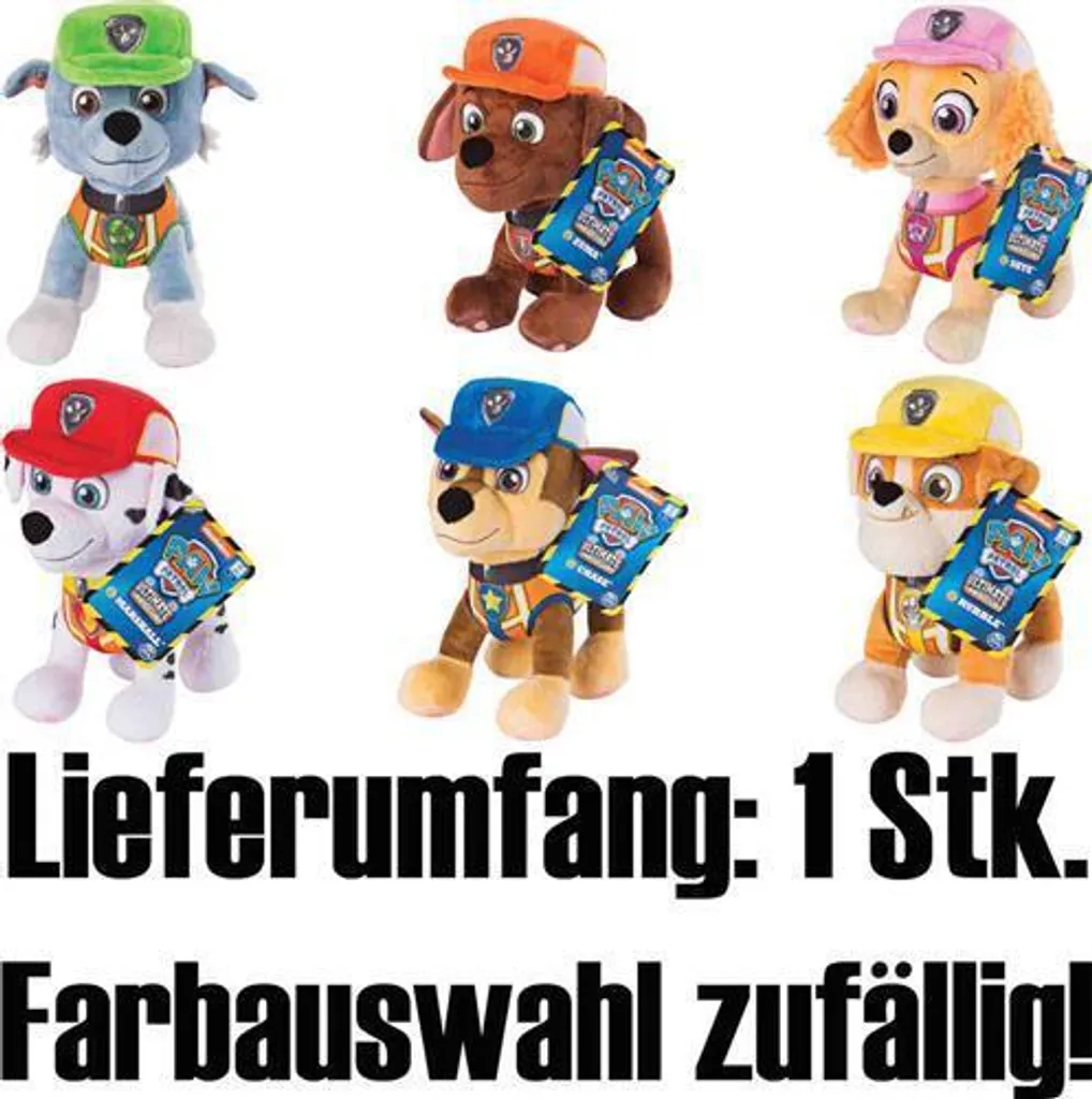Mit den kuschelig weichen Kuscheltieren kö nnen kleine Paw Patrol Fans beruhigt einschlafen und mit ihren Lieblingswelpen trä umen. Diese 20 cm groß en Tierfiguren stehen alleine aufrecht und sind jederzeit fü r Rettungseinsä tze bereit. In ihren Uniformen mit flauschig weicher Kappe und Paw Patrol Abzeichen sehen die Welpen besonders niedlich aus. In den neuen Wellen sind die Helden in ihren ultimativen Feuerwehranzü gen oder Baustellenuniformen erhä ltlich. Im Lieferumfang enthalten ist ein einzelnes Plü schtierKeine Auswahl mö glichAb 3 Jahren