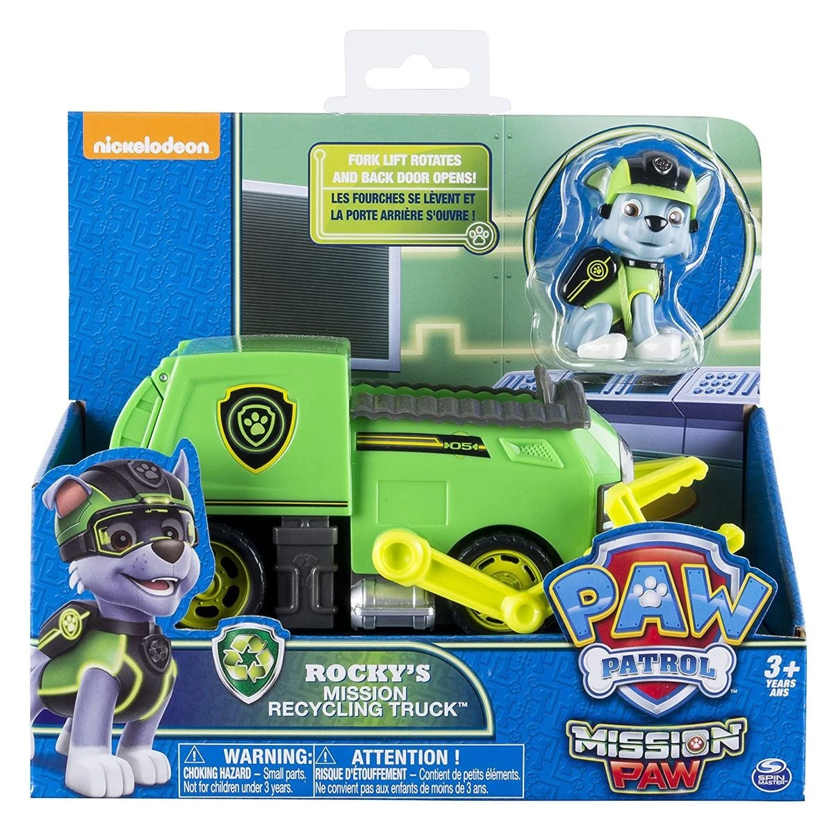 Rocky kann im Fahrzeug platziert werden, um zur Rettung zu eilen. Aber auch einzeln kann der Welpe bespielt werden. Sein Mission Recycling Truck verfügt über einen Gabelheber, der sich auf und ab bewegen lässt und eine Hintertür, die man öffnen kann. Mit Teamarbeit und dem passenden Equipment ist der Erfolg für Rocky und seine Freunde bei jedem Einsatz damit garantiert.