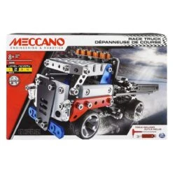 Dieser Rennlaster mit cooler Lichtleiste auf dem Dach ist das Highlight der thematischen Meccano Rennserie.