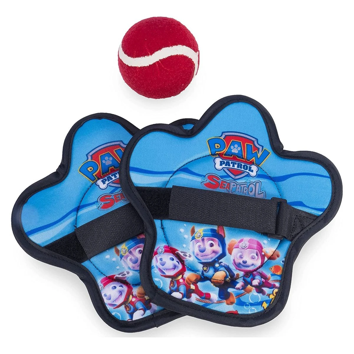 Wasserfestes Klettballspiel für alle Geschicklichkeitsstufen, für Kinder ab 4 Jahren. Das Klettgewebe auf der Innenseite des Handschuhs fängt den Ball in fast jedem Winkel und hilft Kindern beim Fangen lernen. Weiche Fanghandschuhe im PAW Patrol Pfoten-Design für den Einsatz im Garten, Park, Meer oder Strand. Mit verstellbaren Halteriemen auch für kleinere Kinderhände ein sicherer Sitz.
