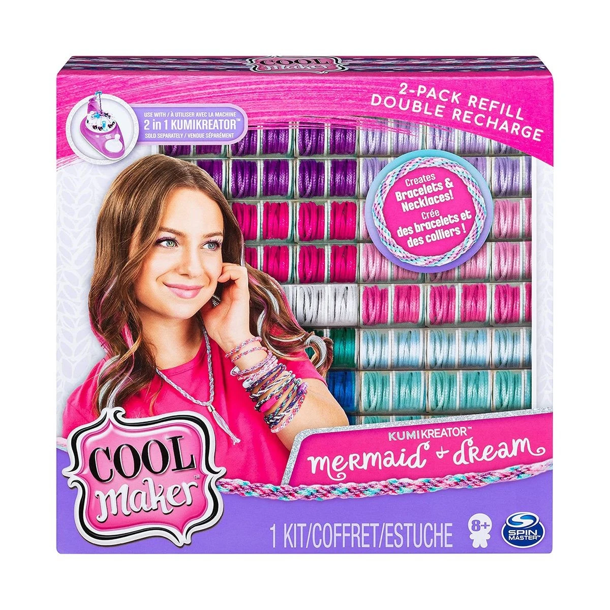 Der passende Schmuck für jedes Outfit? Na klar, jetzt mit dem Kumi Kreator 2 in 1 (separat erhältlich) ganz einfach selbst gemacht! Im Handumdrehen Armbänder und Halsketten in tollen Farben und mit raffinierten Mustern flechten. Ob einzeln getragen, im Stapel-Look, ob mit Ketten in verschiedenen Längen kombiniert, der Fantasie und dem Modegefühl sind keine Grenzen gesetzt. Mit dem Mermaid und Dream Nachfüllset kommen dabei neue Farben und Muster ins Spiel. Tolle Farbtöne, die zum Träumen einladen, für stylische Armbänder und coole Halsketten sowie raffinierte Designvorlagen. Die schwarzen Spulen sind für Halsketten geeignet und sind daher mit mehr Garn bestückt, die weißen werden für Armbänder verwendet.