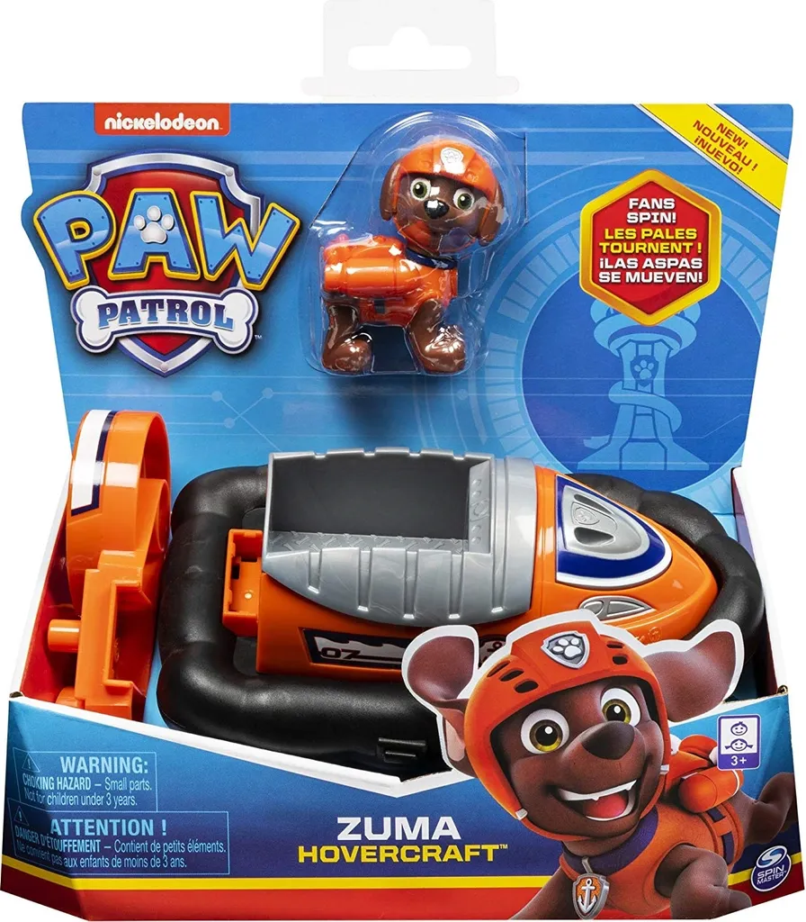 Der mutige Labradorwelpe Zuma aus der TV-Serie Paw Patrol ist mit seinem Luftkissenboot stets zur Stelle, wenn Einsatz im Wasser gefragt ist. Mit freidrehenden Rädern und sich drehenden Rotoren ausgestattet, bringt dieses Wasserfahrzeug Action ins Spiel.