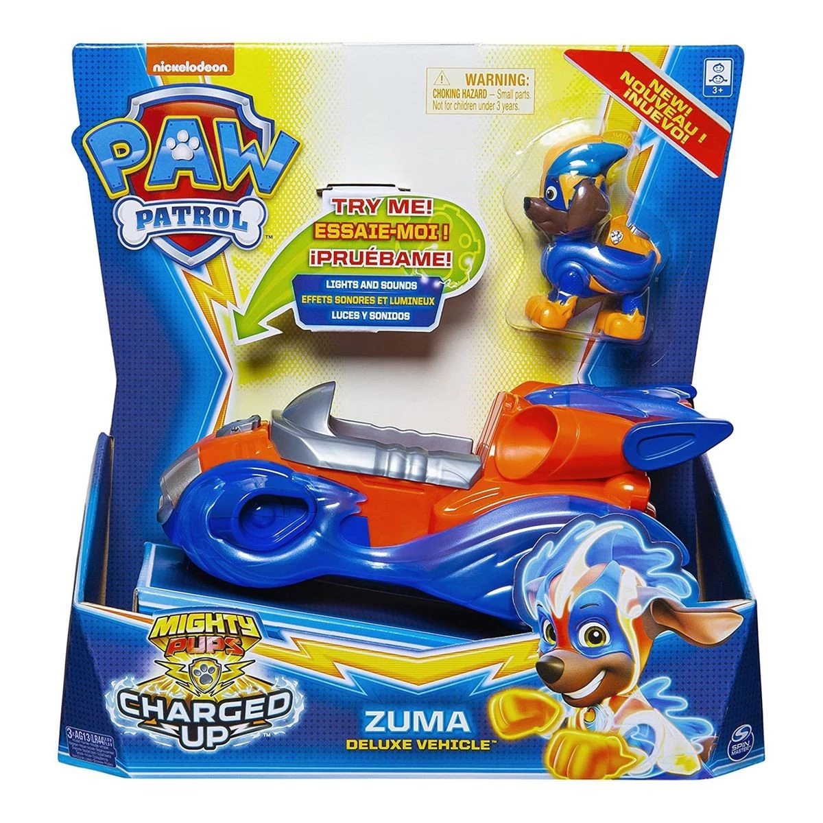 Mighty Zuma ist bereit für Action in seinem Charged Up Deluxe-Fahrzeug! Mit Zuma (Figur im Lieferumfang enthalten) hinter dem Rad seines Hovercraft, ist es Zeit für actionreiche mächtige Rettungen! Das aufgeladene Deluxe-Fahrzeug von Zuma ist mit Lichtern und Geräuschen und funktionierenden Lenkrollen ausgestattet, die es ermöglichen, 360 Grad in jede Richtung zu driften. Drücken Sie den Knopf auf der Vorderseite des Cruisers, um die Lichter und Geräusche zu aktivieren – lichtdurchlässige Akzente am Fahrzeug leuchten auf, während es spannende Soundeffekte macht!