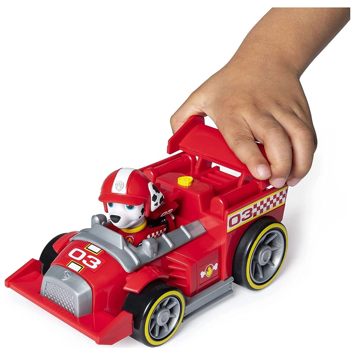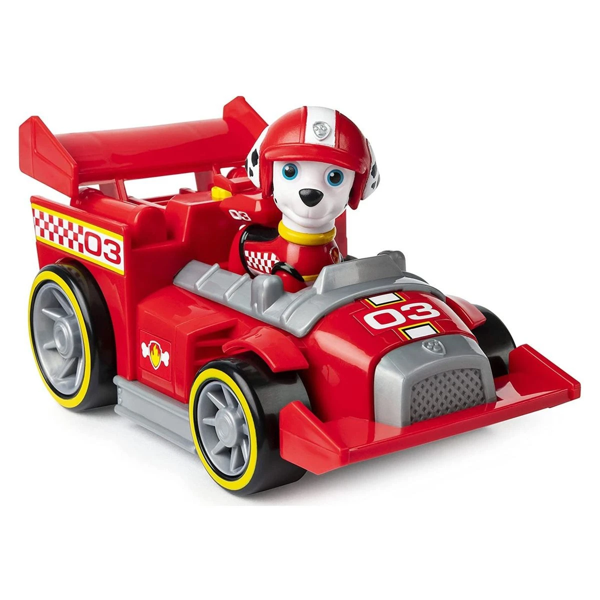 Dieses Rennauto enthält eine Sammelfigur Ready, Race, Rescue Marshall. Marshall tauschen seine klassische Feuerrettungs-Uniform gegen einen roten Rennanzug und Helm, ist bereit für eine Ruff-Raffenrettung!