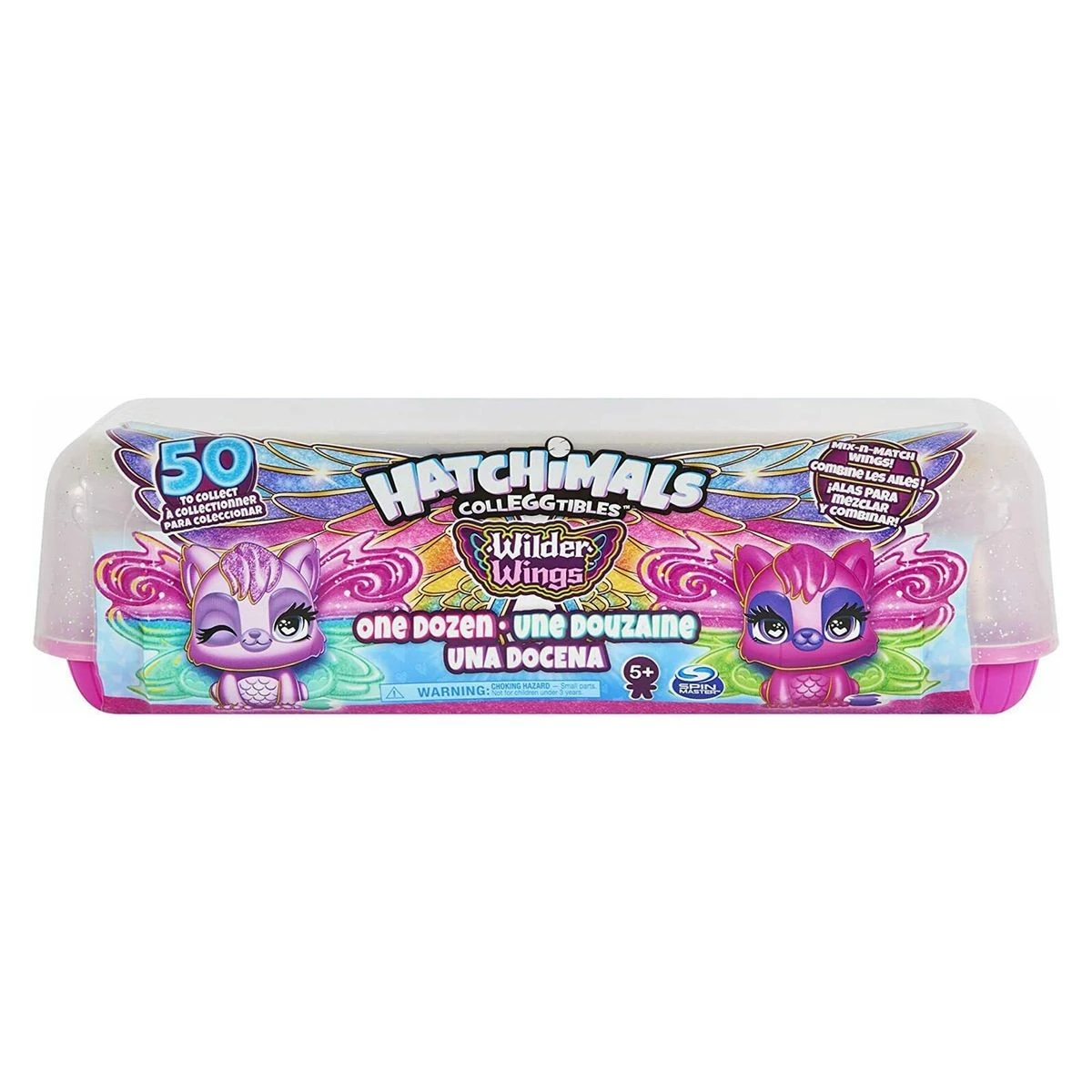 Über 50 Wilder Wings Hatchimals gibt es zu entdecken, dazu sechs Wilder Wings Pixies und fünf Wilder Wings Pixies Riders.Mit dem Wilder Wings 12er-Eierkarton kann man seine Sammlung um ein Dutzend exklusive Hatchimals CollEGGtibles ergänzen. Durch den schimmernden Deckel dieses besonders großen CollEGGtibles Eierkartons lässt sich schon ein Blick auf die schönen Flügel der Hatchimals erhaschen. Im Inneren verbergen sich acht Figuren im Ei und vier bereits geschlüpfte Figuren zu entdecken. Nur im Wilder Wings Eierkarton sind die Lamoor Cuties mit Flügeln im Glitzer-Farbverlauf zu finden.