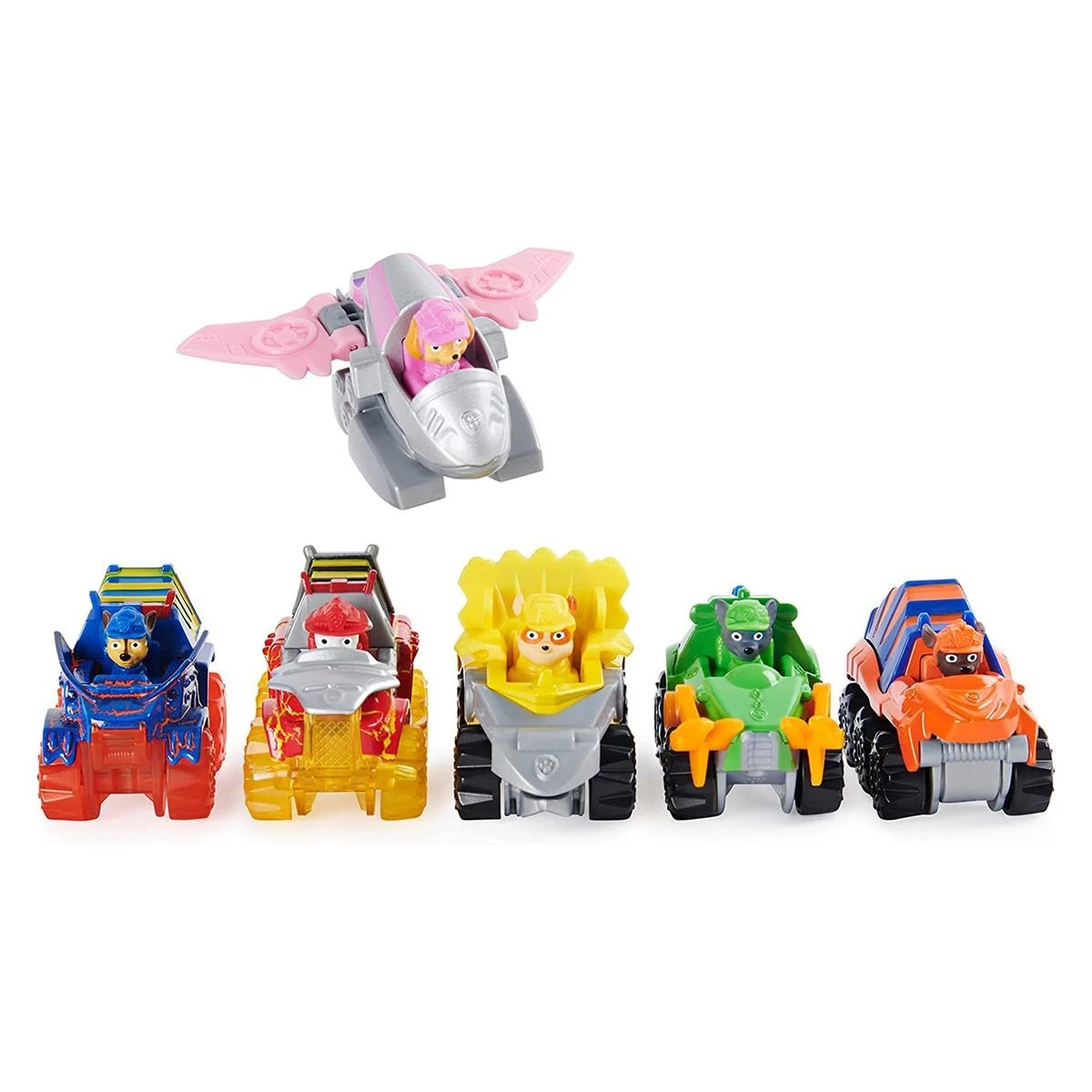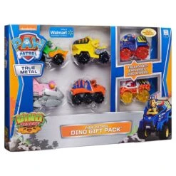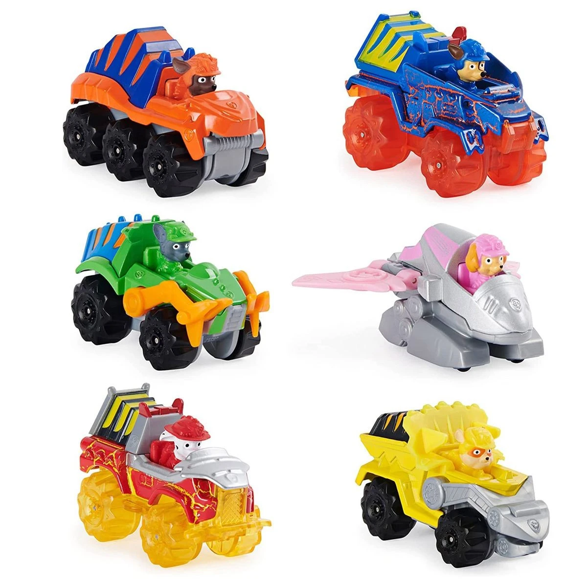 Die PAW Patrol ist mit ihren Spritzgussfahrzeugen bereit für ihren nächsten Einsatz auf der Dino-Insel. Dieses Geschenkset enthält sechs liebevoll im Dino-Look gestaltete Fahrzeuge im Maßstab 1:55, darunter besondere Ausführungen von Chases und Marshalls Fahrzeugen mit coolen Lava-Details und transparenten Rädern, die nur in diesem Set erhältlich sind. Mit ihrem von Dinosauriern inspirierten Gestaltung und Farbgebung, freidrehenden Rädern und hochwertigem Metall, sehen die True Metal Dino Rescue Fahrzeuge den Fahrzeugen aus den PAW Patrol Dino Episoden zum Verwechseln ähnlich.