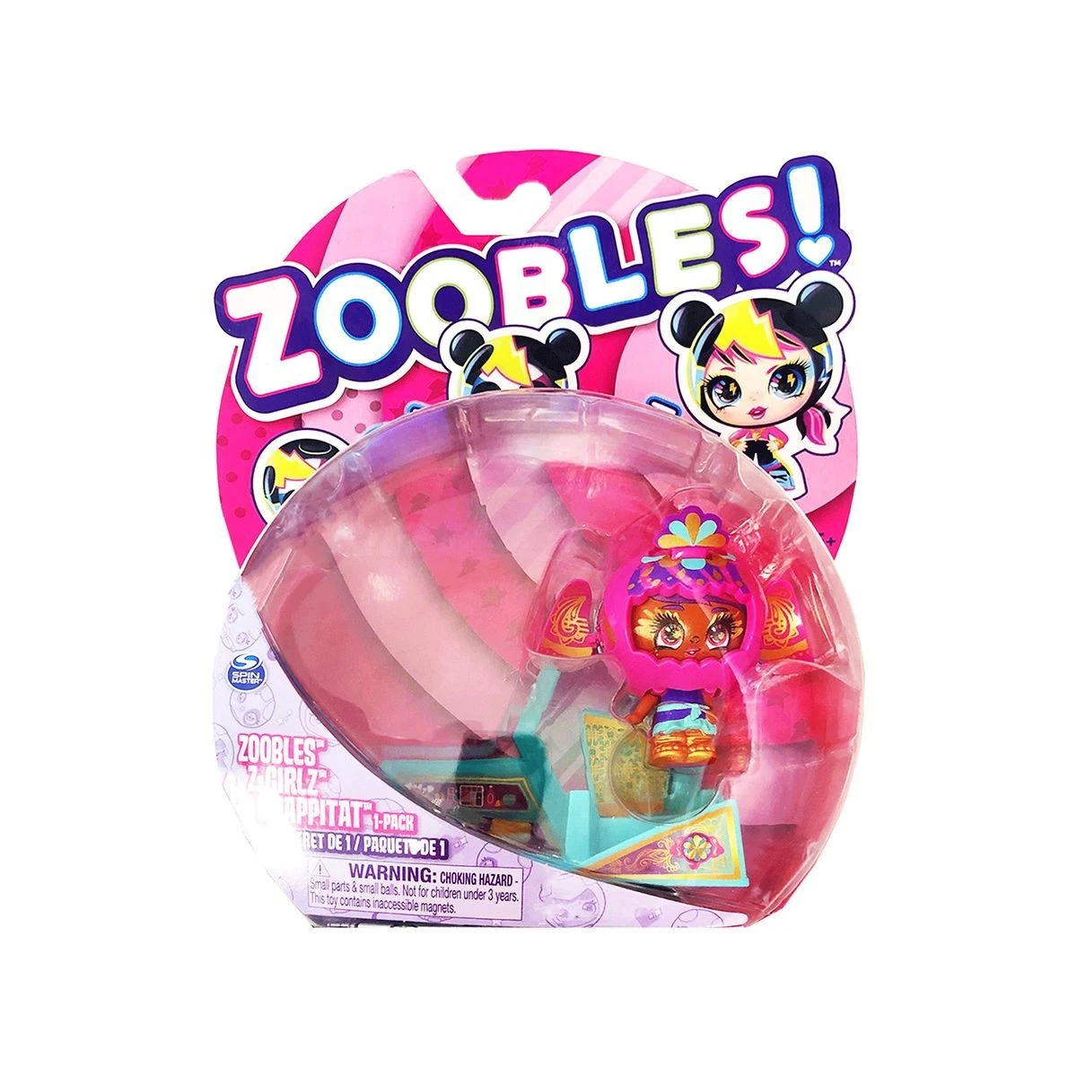 Herzlich willkommen in der Welt der Zoobles Z-Girlz, die die besten Freundinnen der Zoobles Animals sind und selbst eine Tierseele haben. Die Z-Girlz besitzen eine doppelte magische Verwandlung, die sich am Hotspot ihres Spielsets aktivieren lässt. Einfach die Zoobles Kugel darauf rollen oder fallen lassen, schon poppt ein Zoobles Tierchen auf. Drückt man auf dessen Kopf, steht – schwups – ein Z-Girl da. Zusammen mit ihrem thematisch abgestimmten Spielset zu Übernachtungsparty, Hip-Hop, Haarstyling und mehr inspiriert sie frische, freche Spielideen. Natürlich kann die Verwandlung jederzeit rückgängig gemacht werden, damit der Spaß von vorne beginnt. Mit 12 verschiedenen Z-Girlz in der ersten Saison findet jedes Kind seine Lieblingscharaktere. Zusammen mit den Zoobles Animals entsteht eine lustig bunte, verrückte Zoobles Welt, die Kinder ab 5 Jahren begeistert.