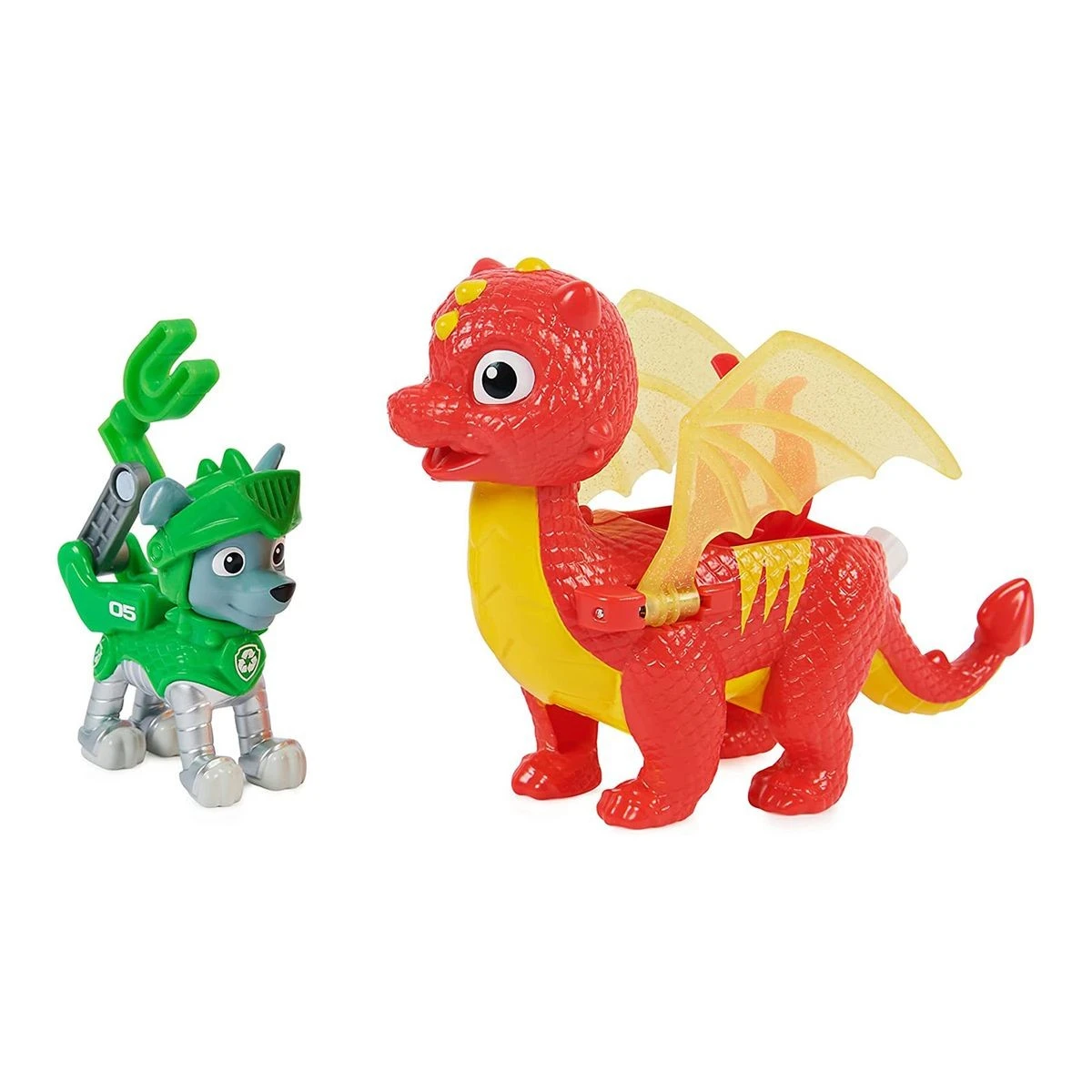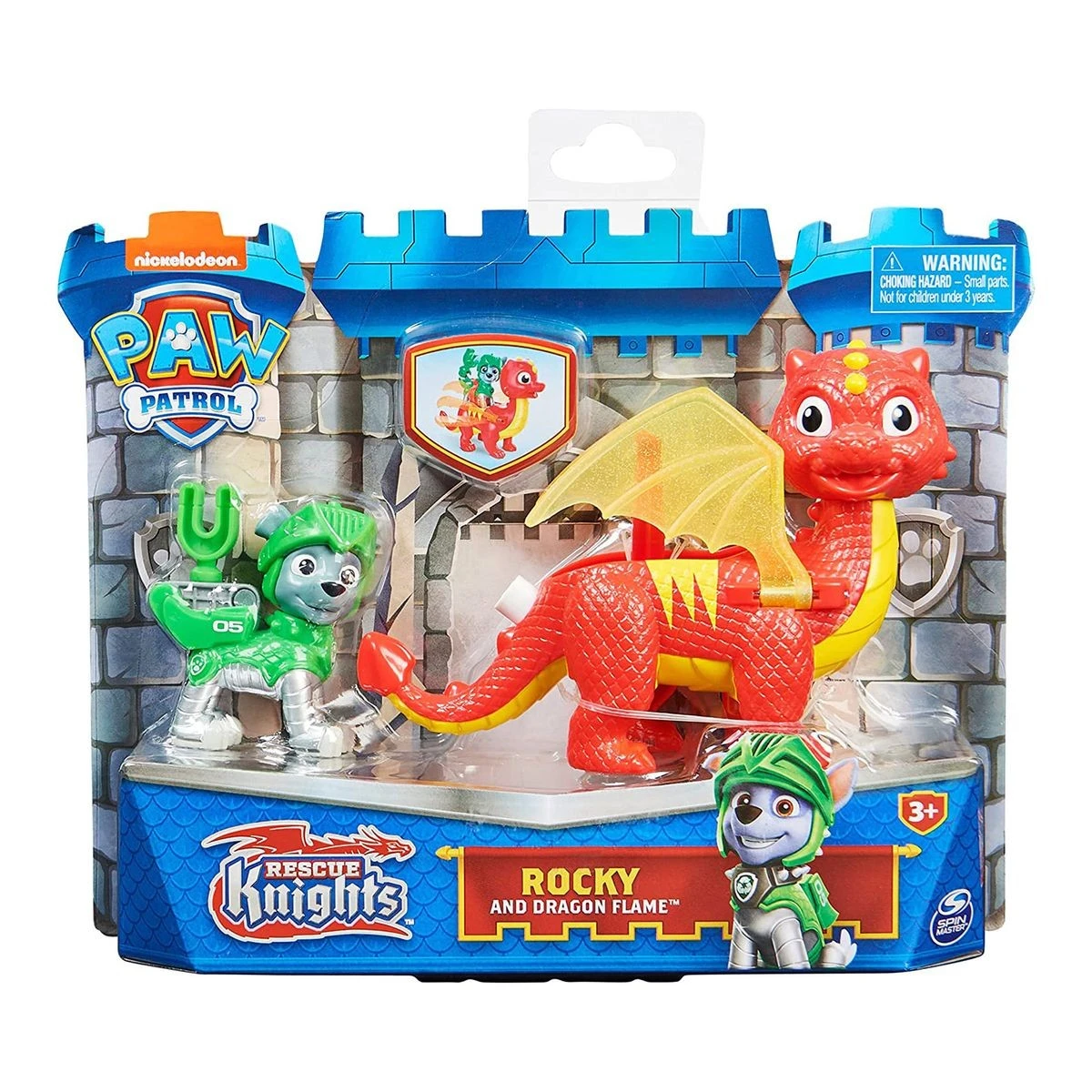 Mit den Spielfiguren-Sets mit je 1 Welpenfigur in Ritterrüstung und 1 Drachenfigur können kleine Paw Patrol Fans ab 3 Jahren die neuen Rescue Knights Abenteuer aus der Animationsserie authentisch nachspielen.