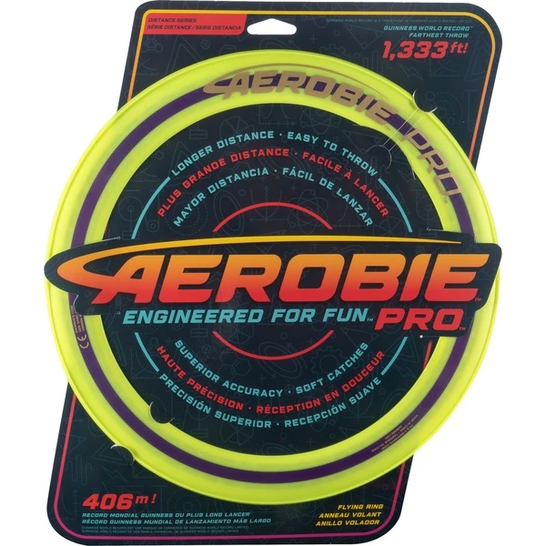 Der Pro Flying Ring ist der Wurfring für echte Frisbee-Profis. Der Erfinder Alan Adler wollte herausfinden, wie weit man einen Frisbee werfen konnte und hat so den Pro Flying Ring erfunden. Mit diesem Wurfring wurde der Guiness-Weltrekord aufgestellt – mit einem 383 Meter langen Flug über die Niagara Fälle. Er hat einen Durchmesser von 33 Zentimetern und überzeugt mit hochwertiger Verarbeitung ohne scharfe Kanten und einer präzisen Flugbahn.