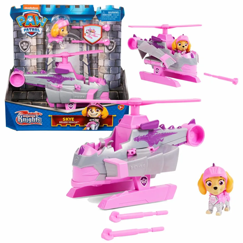 Die Paw Patrol Rescue Knights Ritter machen einen Abstecher ins spannende Mittelalter und besuchen das Schloss Barkingburg. Hier warten einige Abenteuer auf die Fellfreunde. Daher ist es an der Zeit, dass die Paw Patrol zu Rescue Knights Rittern werden. Von der Prinzessin gekrönt, in coolen Ritterausrüstungen und mit den neuen Drachenritter-Fahrzeugen ist das Team hervorragend gerüstet und stellt sich den Herausforderungen zu Lande, in der Luft und im Wassergraben. Keine Rettung ist zu groß, kein Paw Patrol Ritter ist zu klein!
