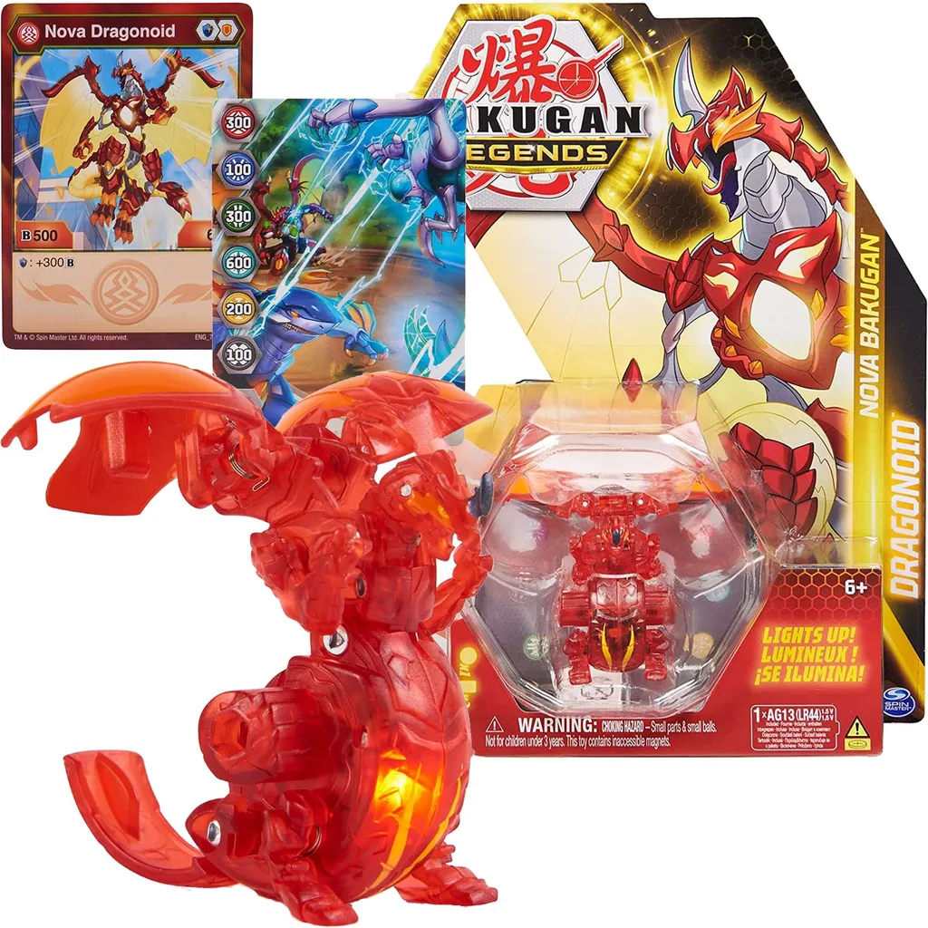 Das Bakugan Legends Set ist aus hochwertigen Materialien hergestellt und besteht aus einer Nova Dragonoid Figur mit einer einzigartigen Bakugan Form, sowie 1 Portalkarte und 1 Charakterkarte. Wenn sie sich verwandelt, beginnt die Nova Dragonoid-Figur in der Farbe der jeweiligen Fraktion zu leuchten.