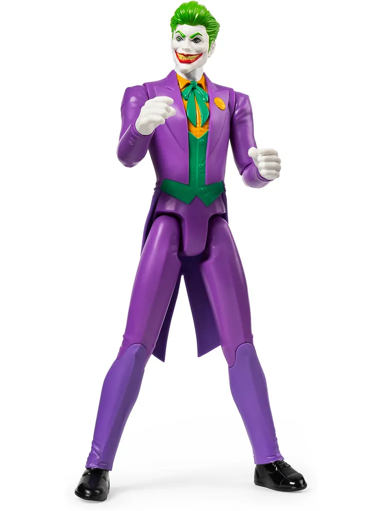 Mit der 30cm großen Joker-Actionfigur beginnt das ultimative Abenteuer um die Herrschaft von Gotham City. Wird Batman oder der Joker die Kontrolle übernehmen? Die Actionfigur verfügt über elf Bewegungspunkte und zeichnet sich durch ein detailgetreues Comic-Design aus. So taucht man direkt in die spannenden Geschichten ein und stellt sich dem Kampf gegen die Helden von Gotham City. Packende Action zum Spielen und Sammeln – mit den 30cm-Figuren der Batman-Charaktere.