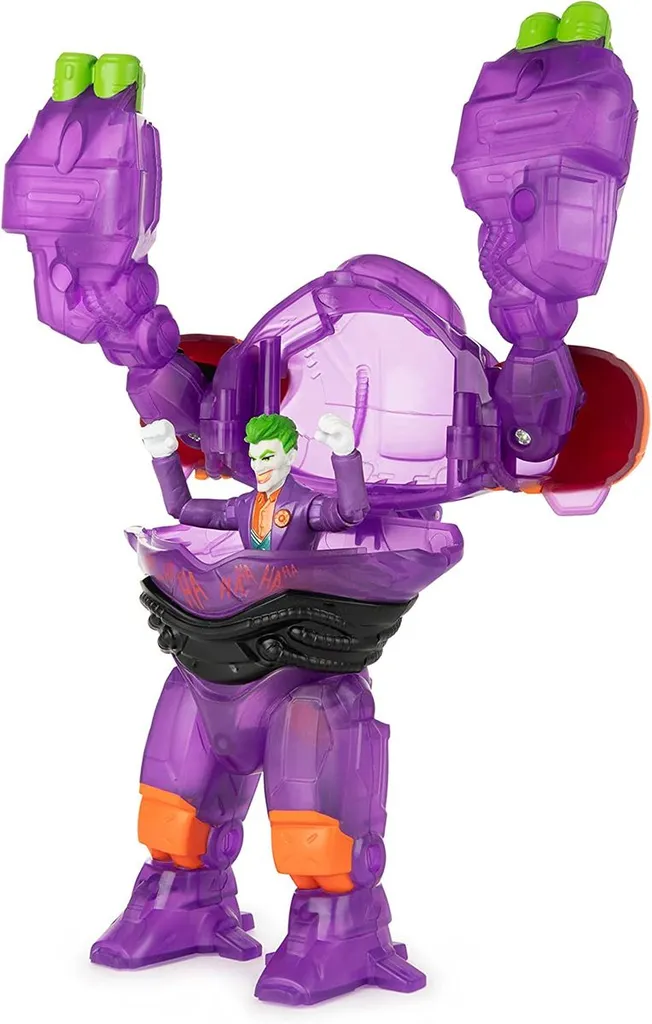 Jede Figur ist im Bat-Tech Design gestaltet und kann durch ihre 11 Bewegungspunkte nahezu jede erdenkliche Kampfpose einnehmen. Sobald Batman die Überhand gewinnt, steigt der Joker in seine durchsichtige lila Tech-Rüstung, die sich für die Figur an 2 Stellen aufklappen lässt.