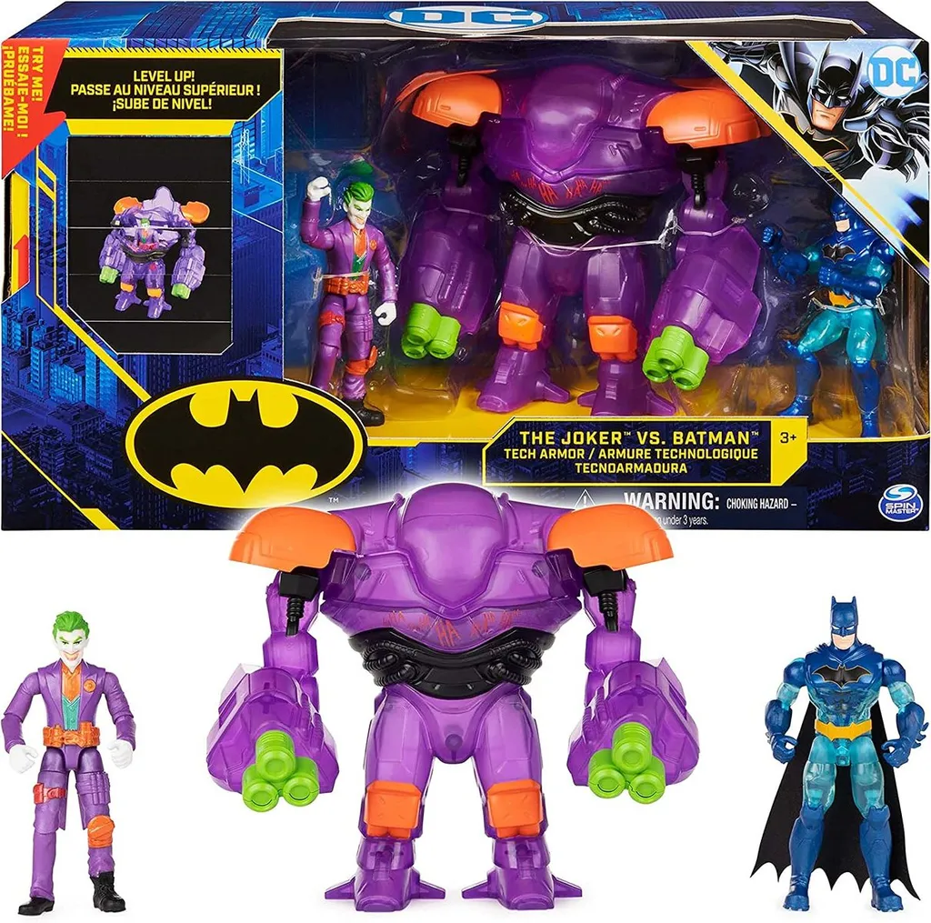 Batman gegen den Joker – mit diesem Spielset lassen sich actionreiche Duelle detailgetreu nachspielen. Mit den exklusiven 10 cm großen Actionfiguren des Jokers, Batman und der wandelbaren Tech-Rüstung für den Joker kann das Duell sofort losgehen.