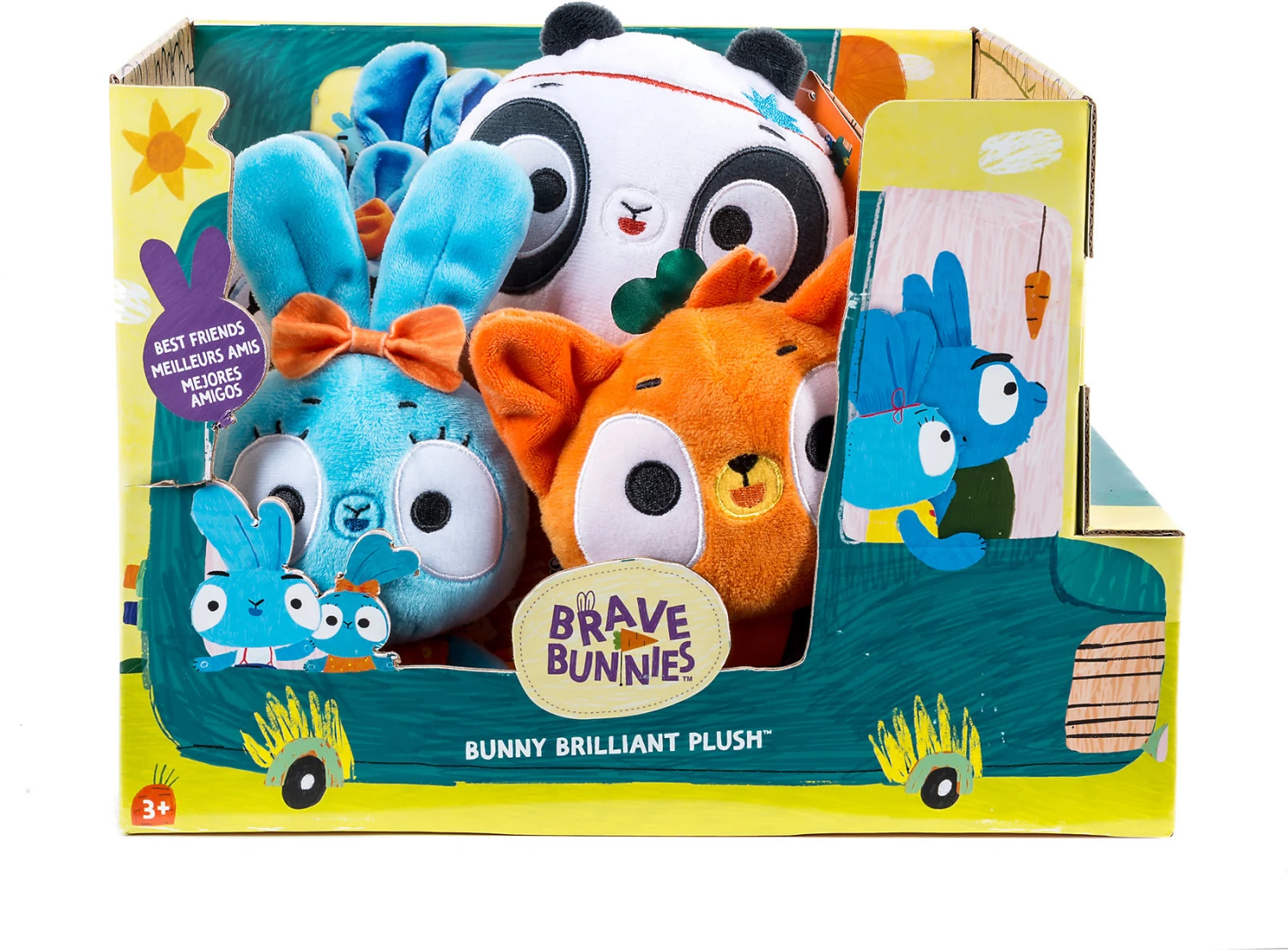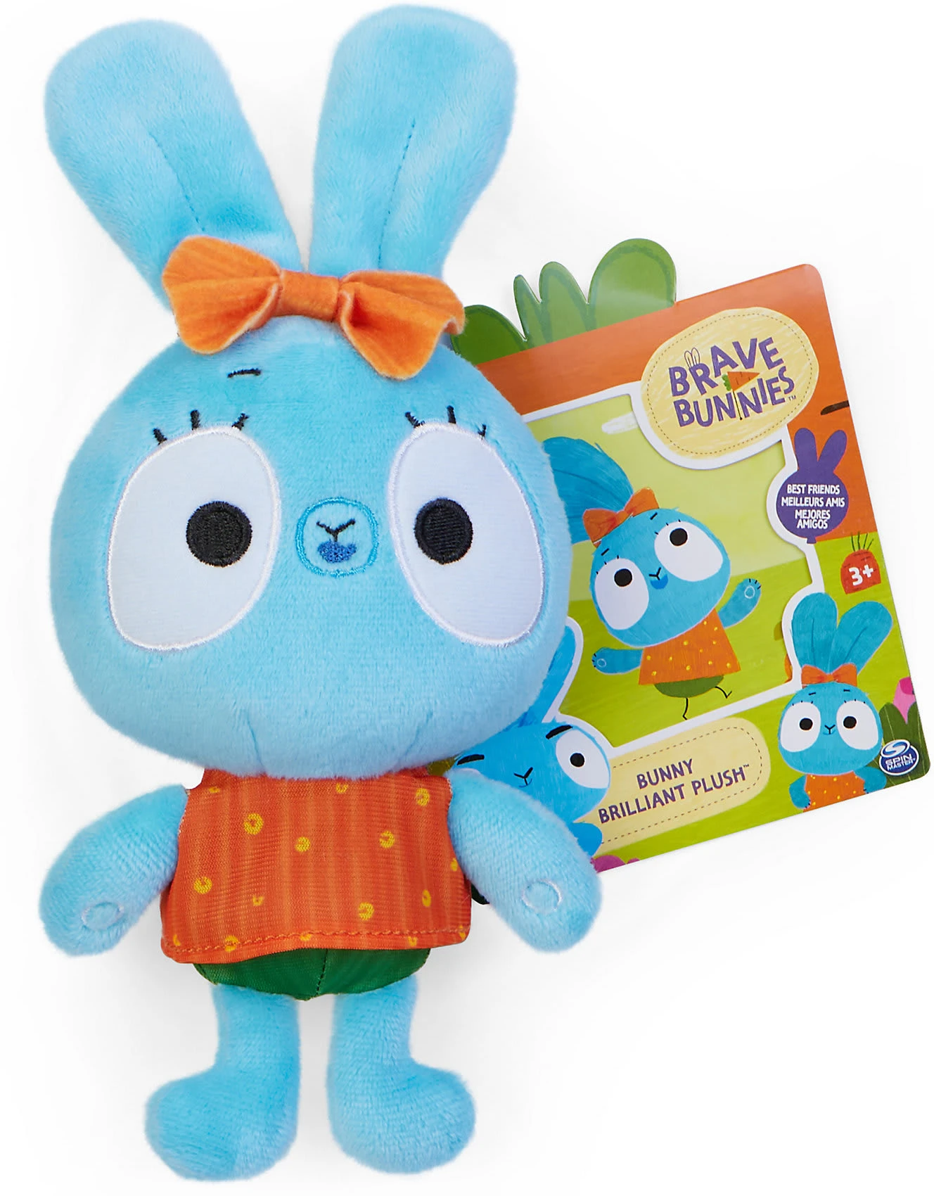 Für alle kleinen Brave Bunnies Fans kommen jetzt die passenden Kuschelkumpel für kreative Spielemomente zuhause. Mit den Brave Bunnies – Basic Plush von Spin Master können die Geschichten aus der Serie nacherzählt, oder eigene Abenteuer erfunden werden. Die neugierigen Hasenkinder Bop und Boo und die restliche Hasenfamilie freut sich endlich in der echten Kinderzimmerwelt für Begeisterung zu sorgen.