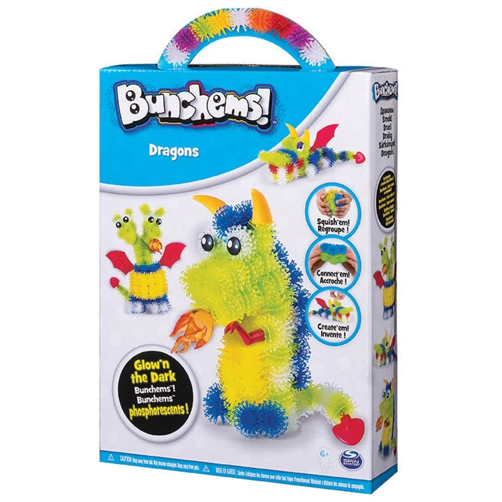 Das Set enthalten 200 original Bunchems Klettbällchen, darunter ca. 40 Bunchems, die im Dunkeln leuchten, ca. 10 Accessoires sowie eine Anleitung.