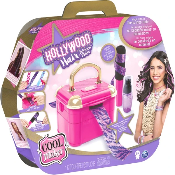 Mit Cool Maker lassen sich Do It Yourself und Beauty Trends ganz einfach umsetzen. Mit dem Hollywood Haarstudio wird die Frisur zum Fashion-Statement. Aus textilen Bändern werden coole, selbstgestaltete Strähnchen, die sich einfach ins Haar klippen lassen. Ob Lust auf einfarbig, bunt, glatt oder gelockt, alles ist möglich und ganz einfach selbst zu gestalten. Schleifenband auswählen, gestalten, durch das Studio laufen lassen und dann mit dem enthaltenen Lockenstab und Wasser stylen. Nach dem Trocknen im Haar anbringen, fertig ist der coole Look, der echten Hollywood Glamour ausstrahlt.Art.-Nr.: 1651699
