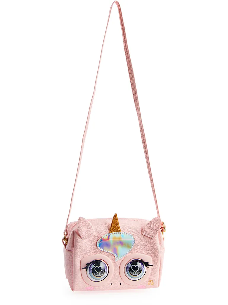 - BOLSO UNICORNIO NIÑA Y MASCOTA INTERACTIVA: con un cuerno brillante, el charol iridiscente, la piel sintética rosa texturizada, la correa ajustable y varios accesorios de metal, el bolso para niña Glamicorn Purse Pet es la mascota y el accesorio de moda definitivo. ¡Colecciona todos los modelos de bolsos para niñas Purse Pets