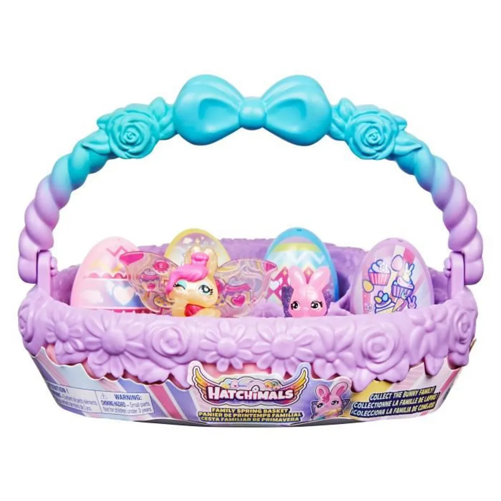 Ein Korb zum einfachen Transport Ihrer Hatchimals. Enthalten: 6 exklusive Hatchimals aus der Hasenfamilie (4 in ihrem Ei und 2 aus ihrem Ei). Brüte sie alle aus! Ab 5 Jahren.