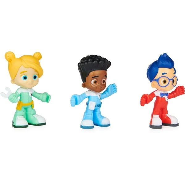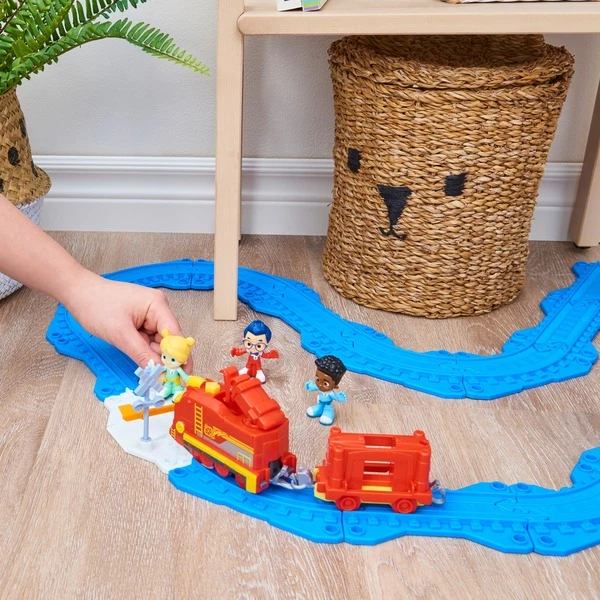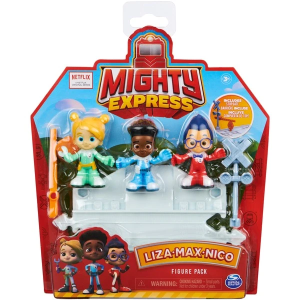 Neben den Zughelden aus Mighty Express spielen drei Kinder eine wichtige Rolle in Lokstadt. Nur wenn Max, Lisa und Nico eng mit den Zügen zusammenarbeiten, können sie gemeinsam alle Herausforderungen bewältigen. Wie bei den Zügen hat auch jedes Kind seine speziellen Fähigkeiten und Aufgaben: Lisa ist die Ingenieurin, Max der Teamleiter und Nico der Gleisprüfer. Damit Vorschulkinder die Abenteuer der beliebten TV-Serie in allen Details nachspielen können, sind die Kinderhelden als Spielfiguren im 3er-Set erhältlich und haben ein Schienenstück mit Schranke dabei, das sich mit den Schienen aus allen Mighty Express Spielsets (separat erhältlich) kombinieren lässt. Art.-Nr.: 1850215