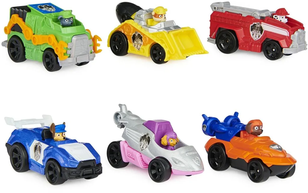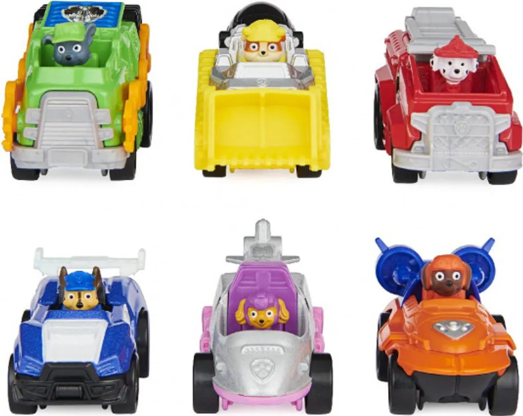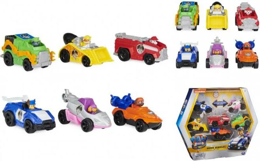 Mit den 6 kleinen Metall-Fahrzeugen kann durch das Kinderzimmer gesaust werden und Lieblingsszenen aus dem Paw Patrol Film nachgespielt werden!