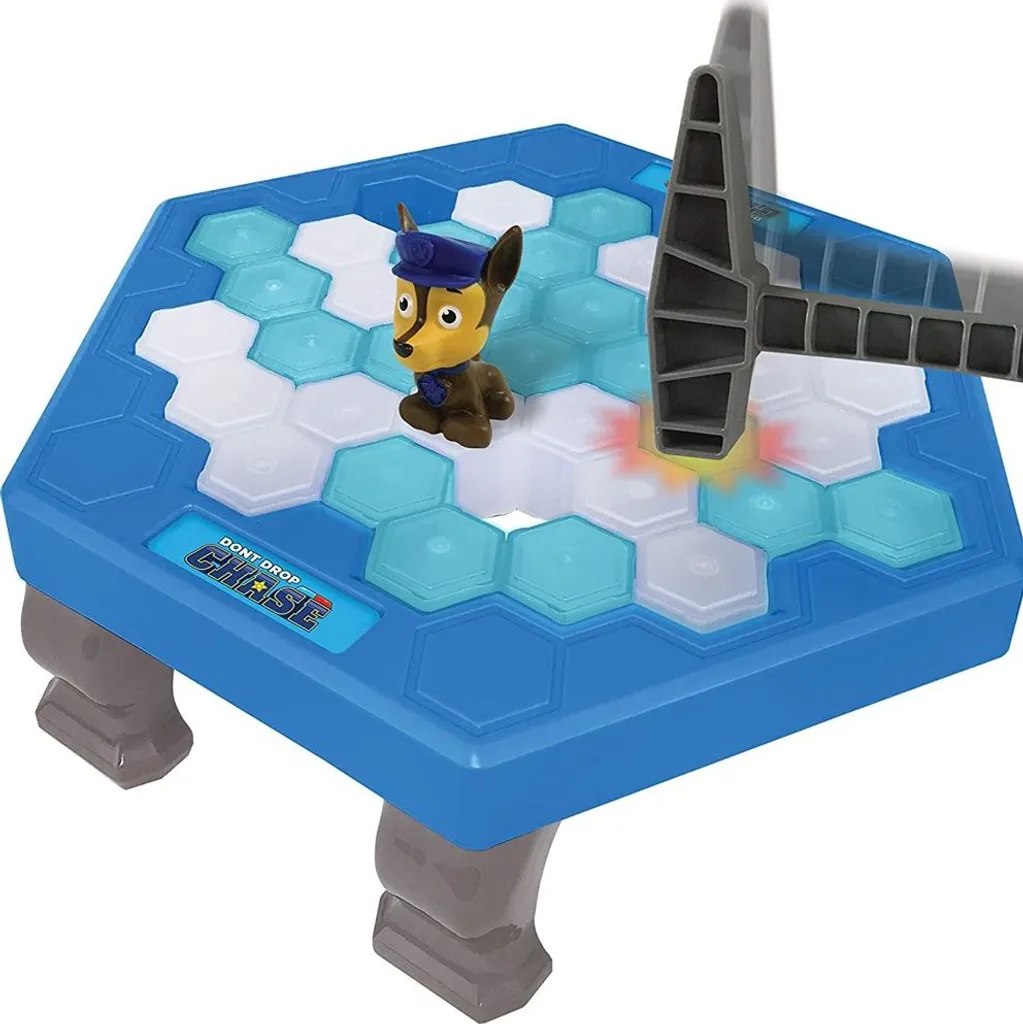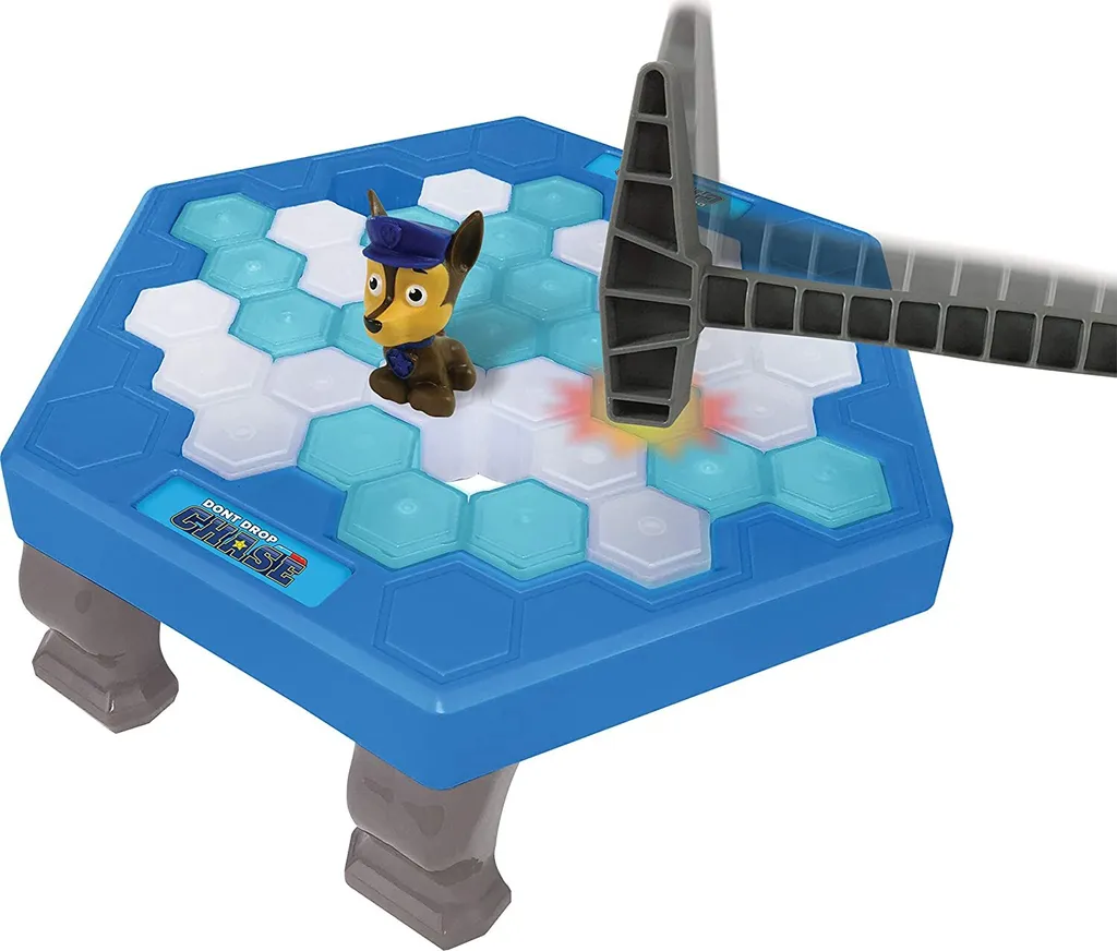 Chase ist auf spannender Mission, Schritt für Schritt tappt er über brüchiges Eis. Hilf ihm, den richtigen Weg zu finden, damit er nicht einbricht. Nacheinander klopft jeder Spieler einen Eisblock heraus. Je öfter geklopft wird, desto schneller fallen die Blöcke. Vorsicht und Geschicklichkeit sind gefragt, denn Chase darf nicht abstürzen. Das beliebte Spielkonzept für 2-4 Spieler ab 5 Jahren.