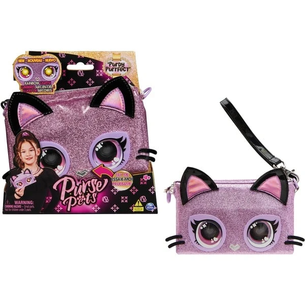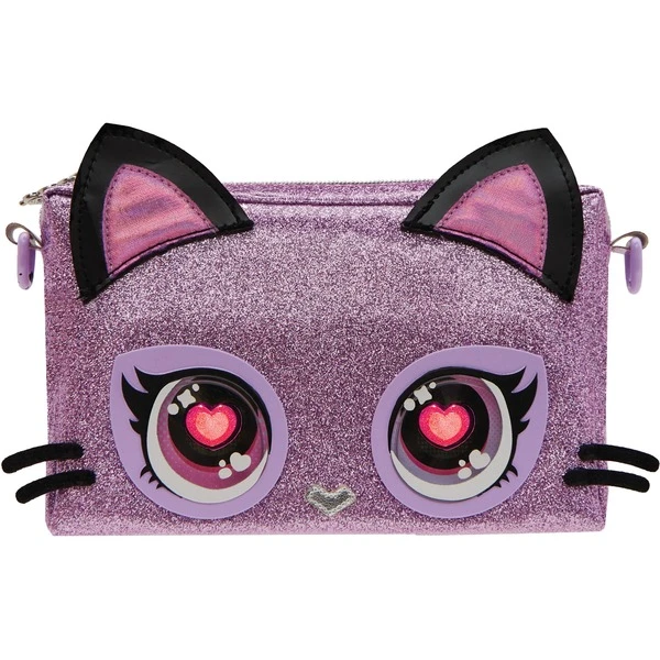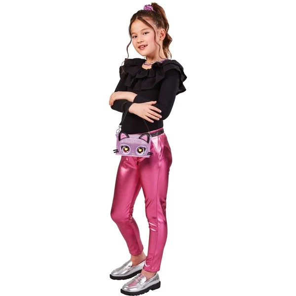 Zeigen Sie Ihren Stil mit den Purse Pets Glitter Wristlets für Mädchen. Diese Taschen sind mit Glitzerdetails und leuchtenden Augen versehen. Tippe unterwegs auf die Nase von Purdy Purrfect, um eine Augenfarbe zu wählen, die zu deiner Stimmung oder deinem Outfit passt, oder tippe auf ihre Nase und ihre Augen wechseln durch die Farben des Regenbogens. Um noch mehr Spielmöglichkeiten zu haben, drücke und halte ihre Nase, um den Lovestruck-Modus zu aktivieren und ihre Augen rosa leuchten zu sehen. Purdy Purrfect hat glatten lila Glitzerstoff, lila und schwarze Kätzchenohren in Metallic-Optik, von Pop-Art inspirierte Augen und einen Metallreißverschluss. Befestige den 33 cm langen Riemen am Ende der Tasche, um deine neue Purse Pets BFF in einer Schlaufe um dein Handgelenk zu tragen, oder befestige ihn und ziehe den Riemen über die Tasche, um Purdy Purrfect als süße Handtasche zu tragen. Die ausdrucksstarken Augen leuchten, blinzeln aber nicht und die Tasche ist geräuschlos. Setzen Sie Ihren Look mit der Purse Pets Glitter Handgelenkstasche Purdy Purrfect in Szene.Art.-Nr.: 100008144