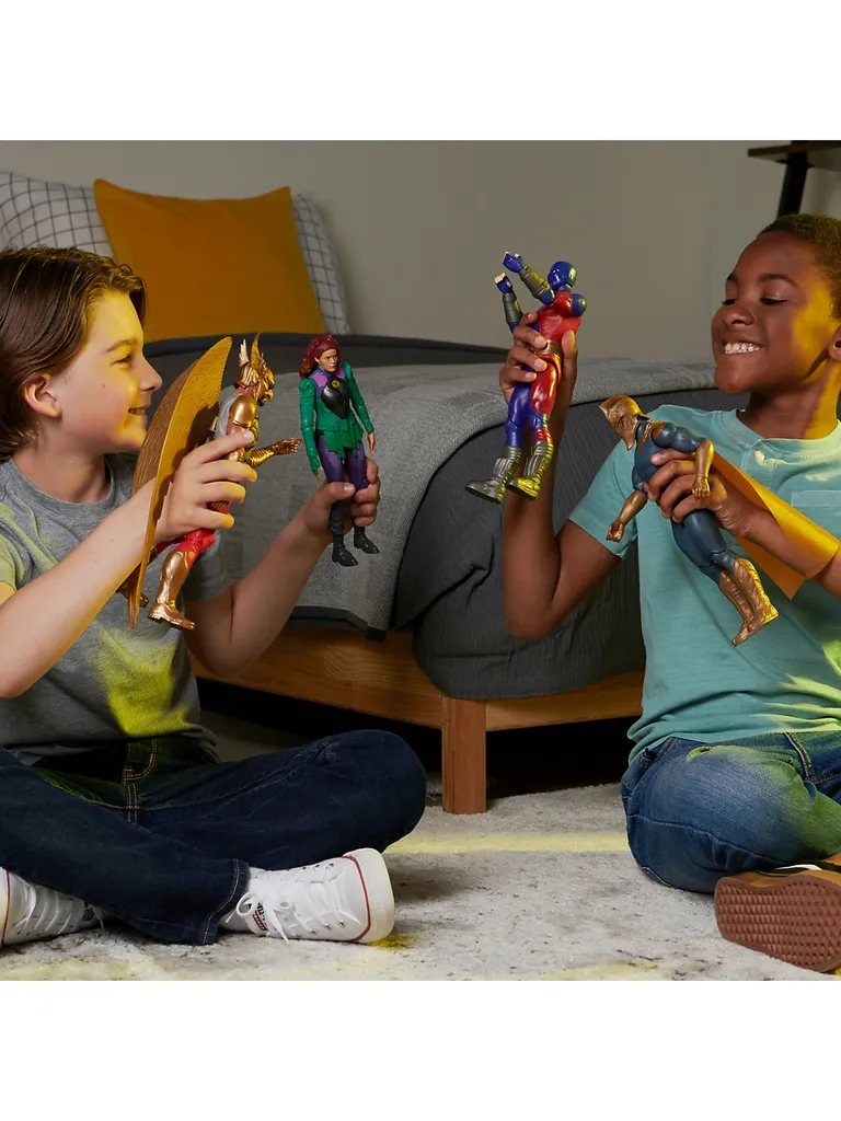 Jetzt können die Fans der coolen Action-Momente aus dem Black Adam Kinofilm ihre ganz eigenen Abenteuer erfinden, oder die coolsten Szenen nachspielen. Mit dieser großen Action-Figur kommt der Held persönlich in die Kinderzimmer. Gemeinsam mit Hawkman können auch andere Charaktere, wie Black Adam, Dr. Fate, Atom Smasher und Cyclone (jeweils separat erhältlich) den Kampf von Gut gegen Böse begleiten. Alle kleinen und großen Fans der Justice Society of America und von Black Adam werden die Superhelden-Spielfiguren und -Spielsets lieben. Details:- Spin Master DC Comics Hawkman Actionfigur zum Kinofilm – authentisch gestaltete Spielefigur- mit 11 Bewegungspunkten für tolle Posen- zum Sammeln und SpielenMaße: ca. 30 cm (Höhe)Material: Kunststoff