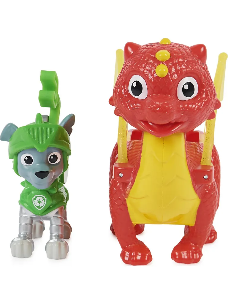 Mit den Spielfiguren-Sets mit je 1 Rocky Welpenfigur in Ritterrüstung und 1 Flame Drachenfigur können kleine PAW Patrol Fans ab 3 Jahren die neuen Rescue Knights Abenteuer aus der Animationsserie authentisch nachspielen. Die Geschichten lassen jedes Ritter-Herz höher schlagen: Schauplatz der mittelalterlichen Missionen ist eine Burg, die Fellnasen schlüpfen in authentische Ritter-Rüstungen und ein Drache treibt sein Unwesen.