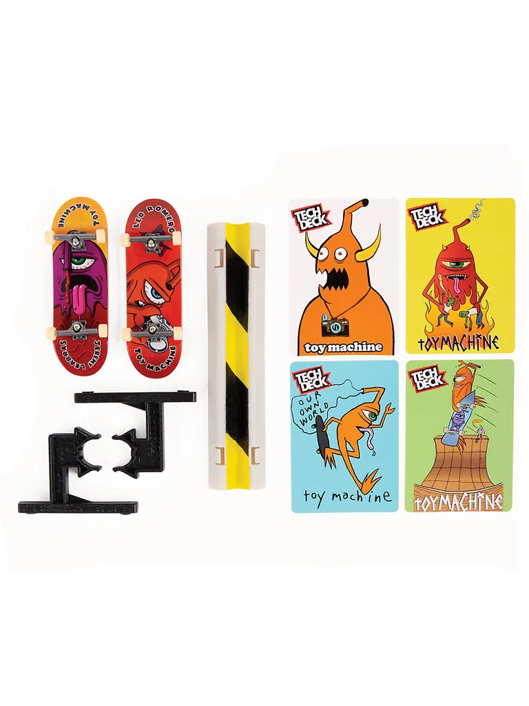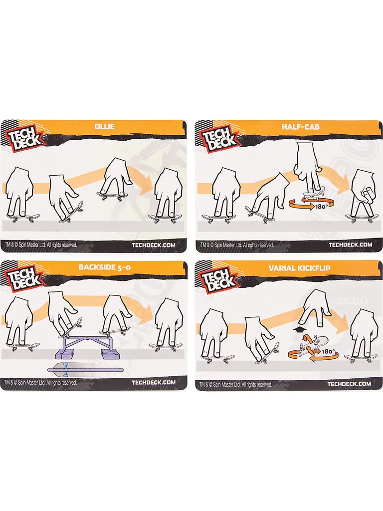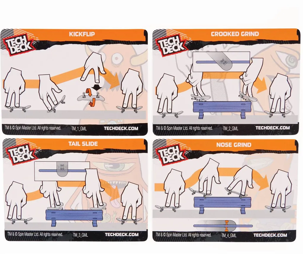 Die ultimative Challenge: Jedes Set enthält 2 originalgetreue Fingerboards, 1 Hindernis und 4 Trickkarten zum Fingerboarden und Sammeln. Hier werden Fingerfertigkeit und beeindruckende Tricks trainiert: Einfach eine der 4 coolen Trickkarten auswählen, der Anleitung folgen und dann testen, wer die Challenge mit dem Hindernis als Erster schafft. Die beiden Fingerboards sind mit authentischen Designs bekannter Skateboard-Grafiken ausgestattet.