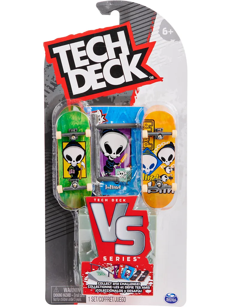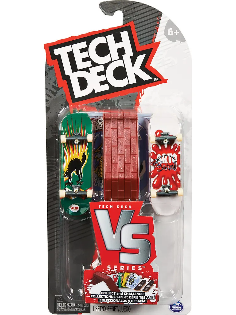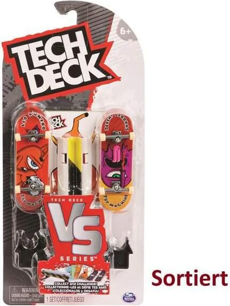 Für alle Fingerboard-Fans kommt hier das perfekte Set für coole Tricks auf dem Tisch! In den VS. Series Sets von Spin Master sind jeweils 2 originalgetreue Fingerboards mit coolen Skate-Motiven enthalten. Außerdem sind in jedem Set ein Hindernis und 4 Trickkarten für neuen Input enthalten. Details:- Fingerboard 2er-Set mit Hindernis, Trickkarten und Zubehör von Spin Master- jedes Set enthält 2 originalgetreue Fingerboards, 1 Hindernis und 4 Trickkarten- Trickkarten zum Lernen neuer Tricks Maße: Tech Deck: ca. 96 mm Material: KunststoffHinweis:Der Artikel wird in einer zufälligen Farbvariante geliefert. Eine Vorauswahl ist nicht möglich.