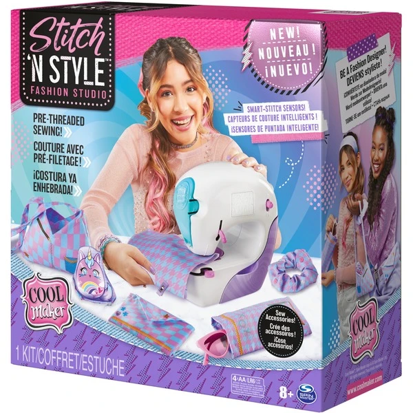Mit der Stitch n Style Nähmaschine können Kinder das Nähen ganz einfach und erlernen. Das umständliche Einfädeln der Nadel entfällt und die Sensoren sorgen dafür, dass die Maschine nur dann näht, wenn auch Stoff unter der Nadel liegt. Einfach das gewünschte Projekt entsprechend der Vorlage ausschneiden, die Fadenkartusche in die Maschine klicken und das Nähen kann losgehen. Mit den Aufklebern, die mithilfe von Wasser aufgebracht werden, können die genähten Accessoires wie Schultertasche oder Sonnenbrillenetui noch individuell verziert werden. Die sechs enthaltenen Projekte umfassen eine Schultertasche, eine Bauchtasche oder Clutch, ein Stofftier, ein Sonnenbrillenetui, ein Scrunchie sowie ein Kopftuch. Die Fadenkartusche enthält 90 Meter Faden, so dass nach dem Nähen der enthaltenen Projekte weitere eigene Projekte möglich sind.Art.-Nr.: 1850251