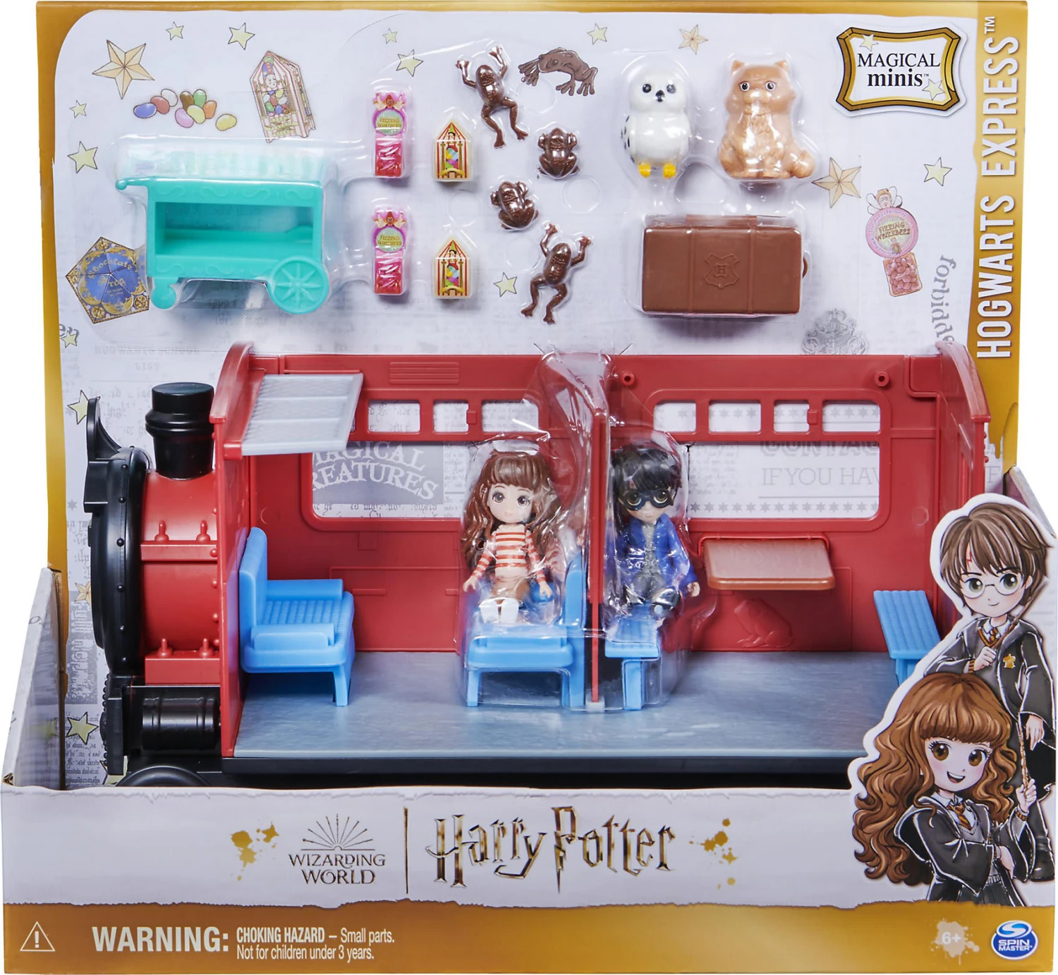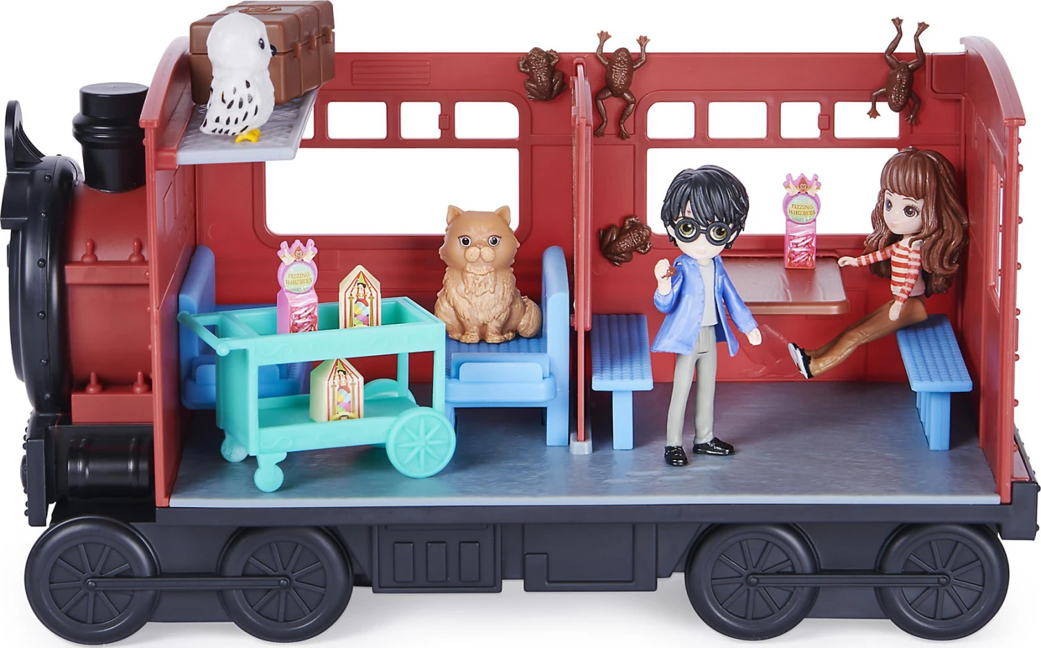 Hogwarts – die Welt von Harry Potter und seinen Zauberfreund*innen und Schauplatz vieler spannender Abenteuer! Mit diesem „Wizarding World – Hogwarts Express Zug“ Spielset von Spin Master geht es nach einmal mehr vom Gleis 9 ¾ in Richtung Zauberschule. Für kreative Spielemomente sind in dem Set die beiden Charaktere Hermine Granger und Harry Potter als Spielefiguren dabei. Fehlen dürfen im Hogwarts Express natürlich auch nicht die magischen Tierbegleiter*innen Krumbein und Hedwig. Viele authentische Details, wie der Süßigkeiten-Wagen, eine große Truhe und mehr, laden zu kreativen Spielmomenten ein. Mit diesem Spielset können Hexen, Zauberer und Muggel ihre Lieblingsszenen aus Harry Potter nachspielen und in Ergänzung mit anderen Wizarding World Sets entsteht eine tolle Hogwarts-Welt.