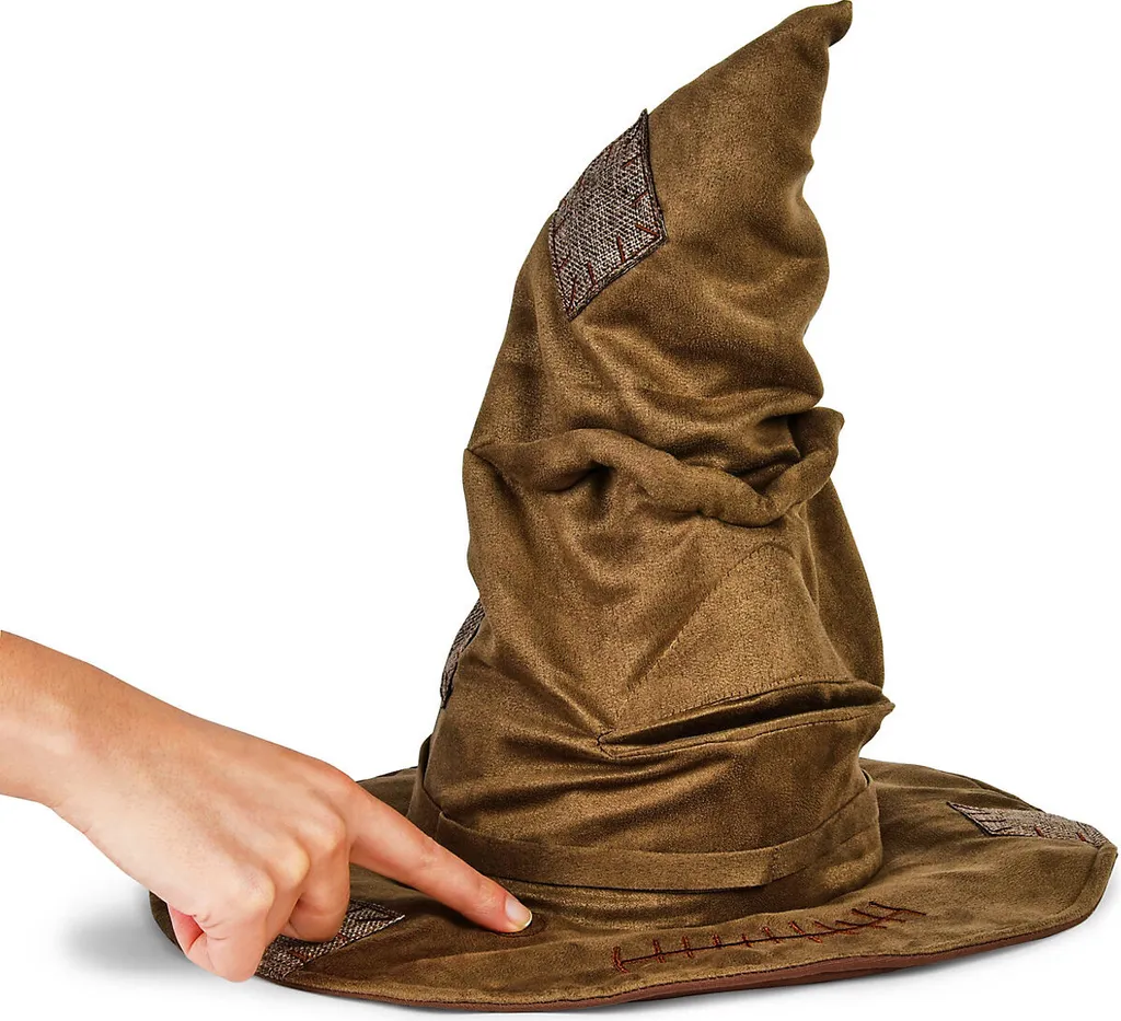 Mit 15 Sätzen, authentischen Details und umfassender Gesichtsmimik ist der Sprechende Hut perfekt geeignet, damit junge Hexen, Zauberer und Muggel die ikonische jährliche Zuordnungszeremonie für Erstklässler aus Harry Potter nachspielen können. Setzt man den Hut auf, antwortet der Sprechende Hut sofort. Seine Augenbrauen, Kopf und Mund bewegen sich, während er das Hogwarts-Haus für den Träger bestimmt und verkündet. Wird es Gryffindor, Ravenclaw, Hufflepuff oder Slytherin?