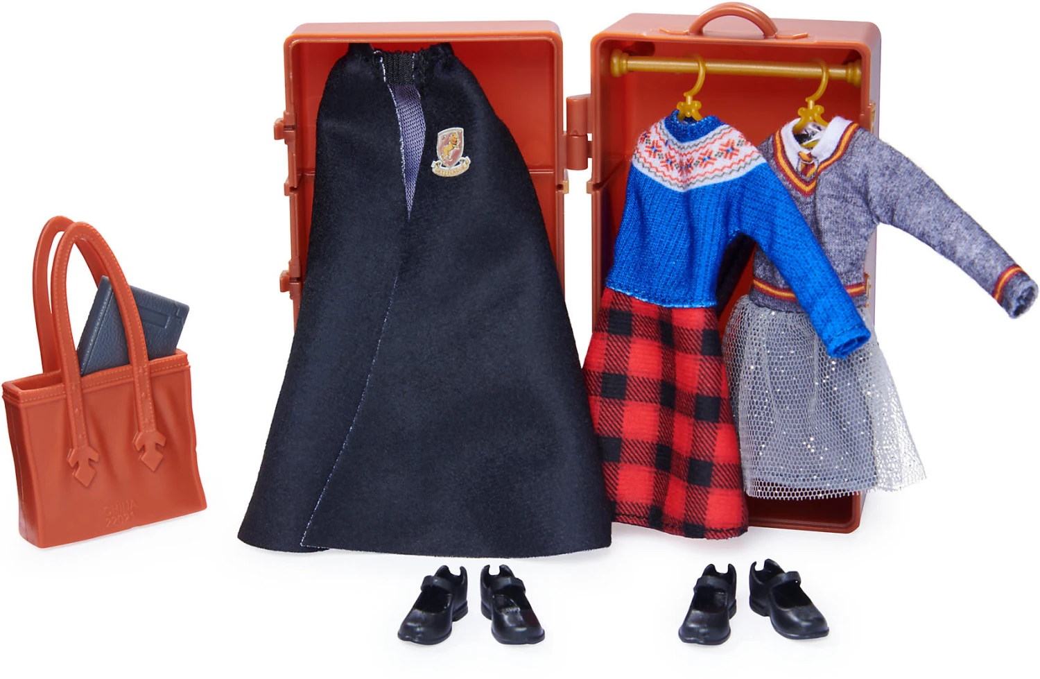 Kommt ein zauberhaftes Geschenk mit vielen Zubehörteilen zum Nachspielen der Lieblingsszenen oder zum Erfinden ganz eigener Zauberei-Abenteuer in der aufregenden Welt von Hogwarts. Ginny und Hermine haben jeweils 2 tolle Outfits mit Schuhen und vielen Zubehörteilen dabei, die dazu einladen ausprobiert zu werden. Der beiliegende Koffer kann aufgestellt als Kleiderschrank genutzt werden und die Outfits finden an den Bügeln Platz. Sind die beiden in ihre Schuluniform gestiegen, kann der Schultag beginnen. Accessoires, wie die Zauberstäbe sind natürlich auch in der Kinderzimmer-Hogwarts-Welt unverzichtbar.